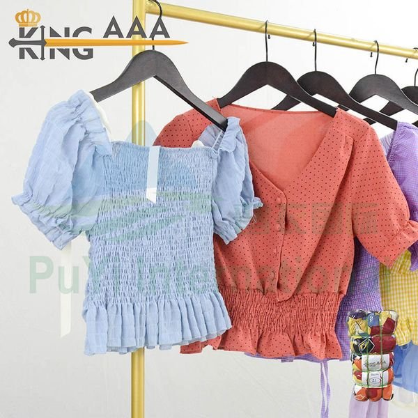 Plain Dyed Cotton Blouse Ladies Used Clothing Korea Summer Blouse for Women